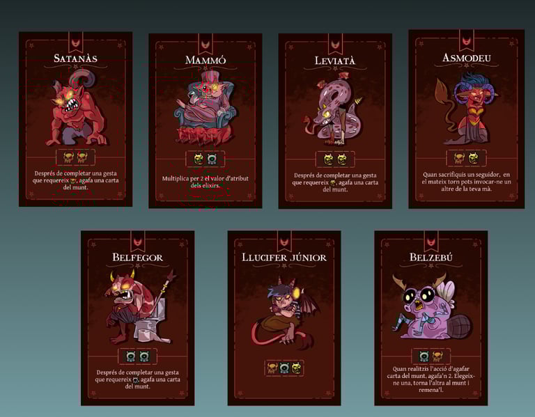 Cada jugador es posa a la pell d'un príncep de l'infern: Asmodeu, Belfegor, Satanàs, Leviatà, Mammó, Belzebú o Llucifer Júnior.